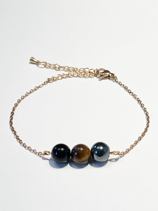 Bracelet en Acier Doré avec Hématite, Œil de Tigre et Obsidienne Noire - Alliez Style et Protection