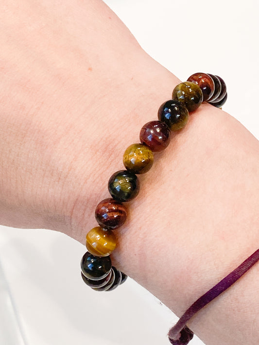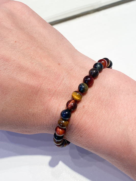Bracelet 3 Yeux en Œil de Tigre, Œil de Taureau et Œil de Faucon – Perles 6mm