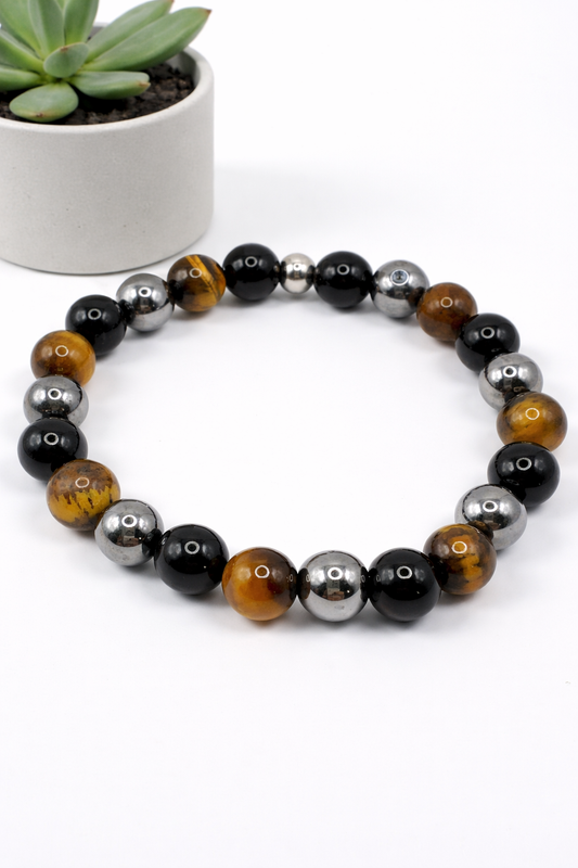 Bracelet Triple Protection en Pierres Naturelles – Œil de Tigre, Obsidienne Noire & Hématite