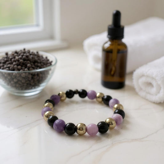 Bracelet Protection & Ancrage – Lépidolite, Obsidienne Noire et Hématite Dorée en Pierres Naturelles