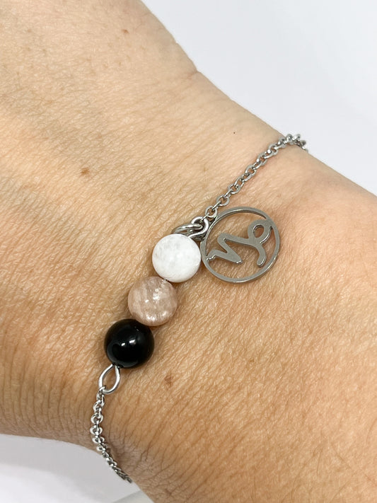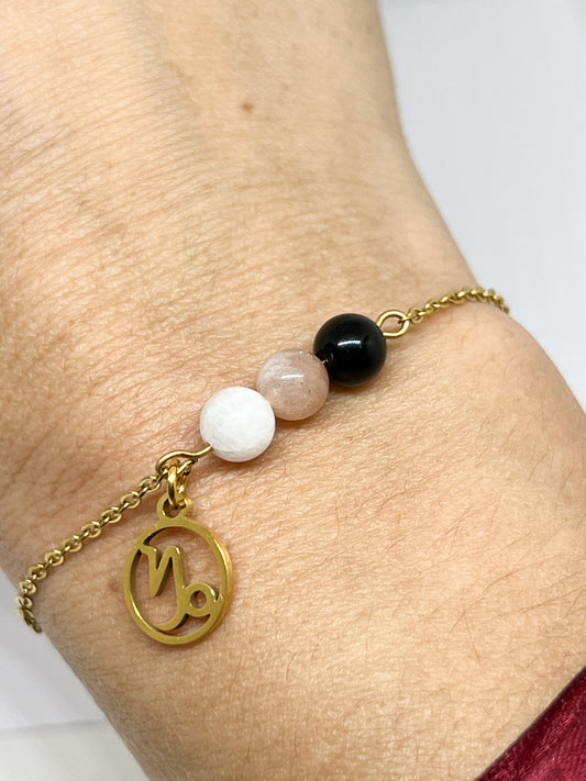 Bracelet Astrologique Capricorne avec Pierre de Lune, Soleil et Obsidienne Noire