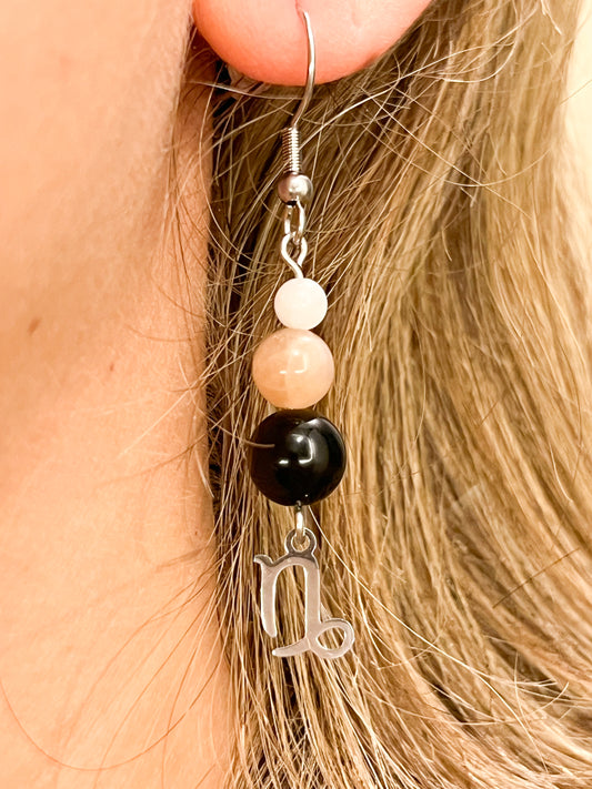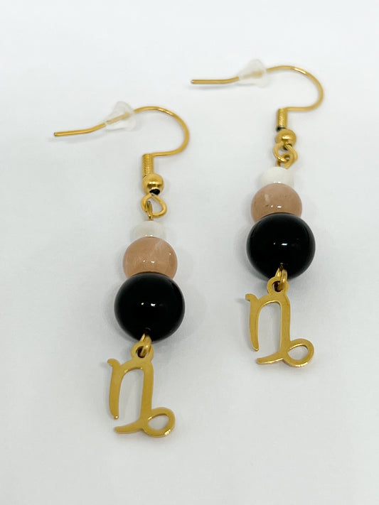 Bijoux Capricorne : Boucles d’Oreilles en Acier Doré avec Pierres Naturelles