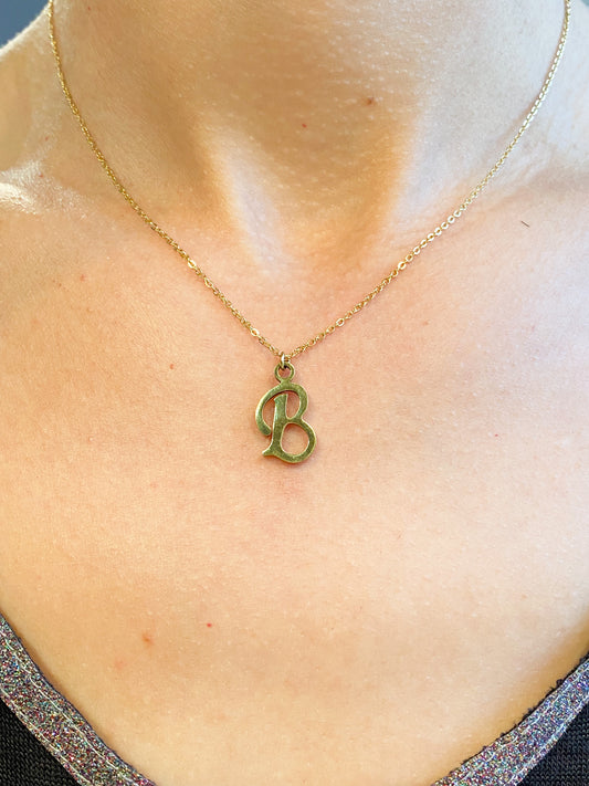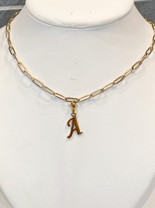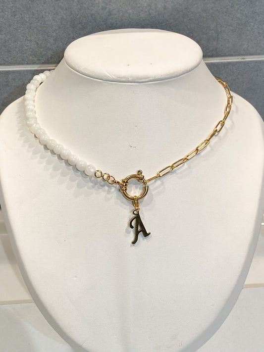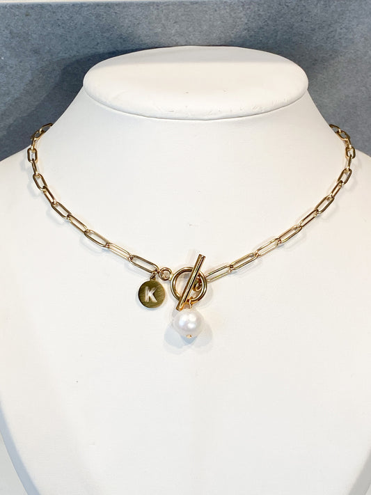 Collier fermoir T en acier inoxydable or avec perle d'eau douce et lettre