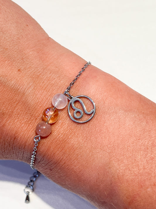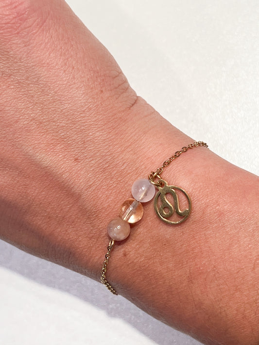 Bracelet Astro Lion : Quartz Rose, Citrine & Pierre de Soleil pour Énergie et Confiance