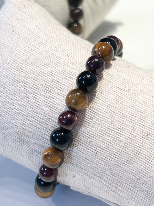 Bracelet Astro Lion en Grenat, Œil de Tigre & Obsidienne Noire - Énergie et Protection
