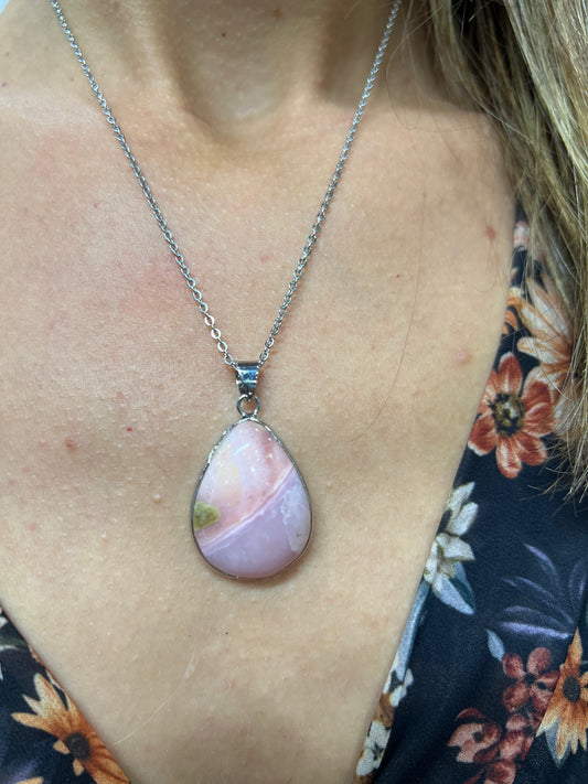 Collier Rhodochrosite Naturelle – Amour & Apaisement | Acier Inoxydable Argenté
