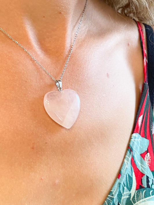Collier en Quartz Rose et Acier Inoxydable : L'Amour Éternel Incarné dans un Bijou