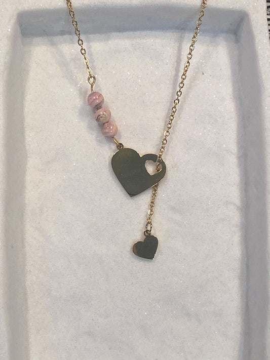 Collier coeur en acier inoxydable avec rhodochrosite