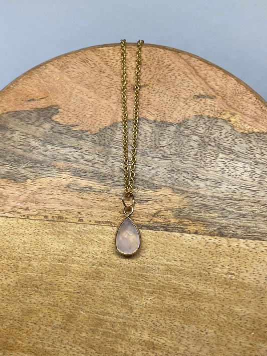 Collier en acier inoxydable en pierres naturelles Quartz rose
