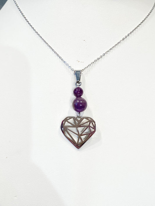 Collier améthyste en acier inoxydable - Cœur -