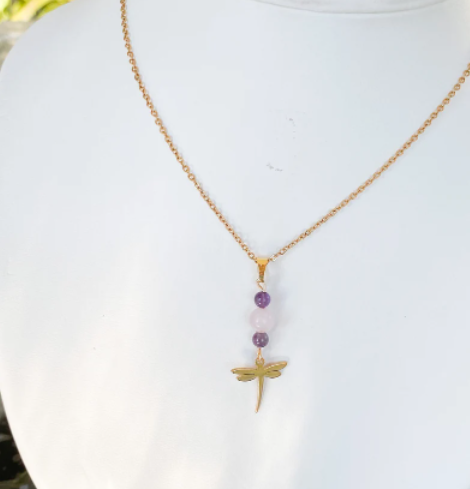 Collier libellule en acier inoxydable en pierres naturelles Apatite