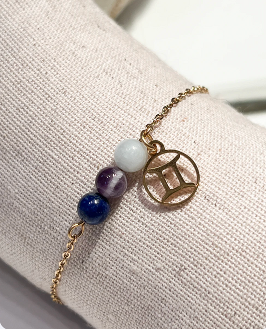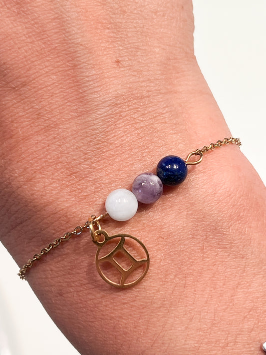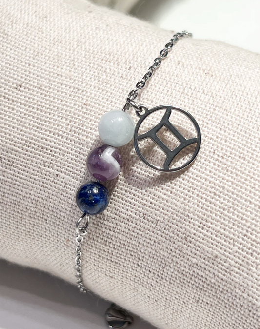 Bracelet Astrologique Gémeaux : Améthyste, Lapis Lazuli et Aigue-Marine