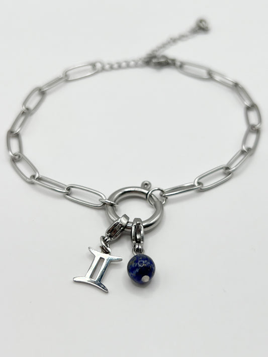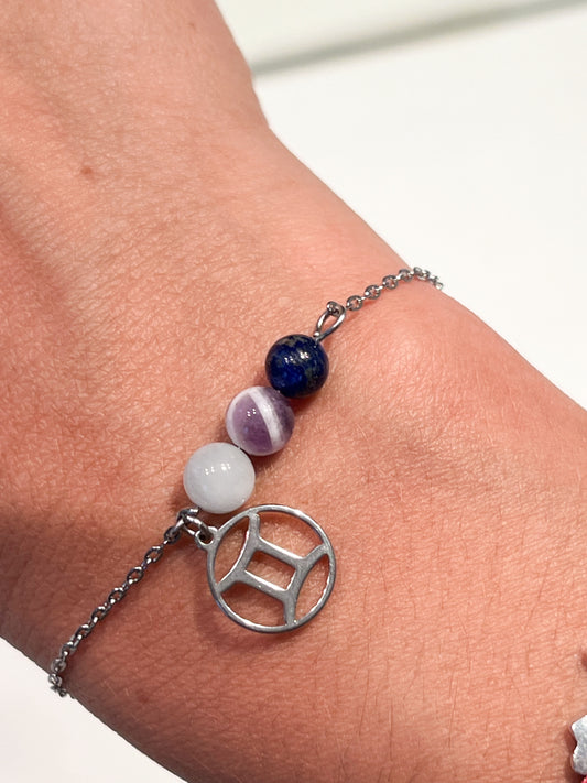 Bracelet Gémeaux – Acier Argenté & Pierres Naturelles
