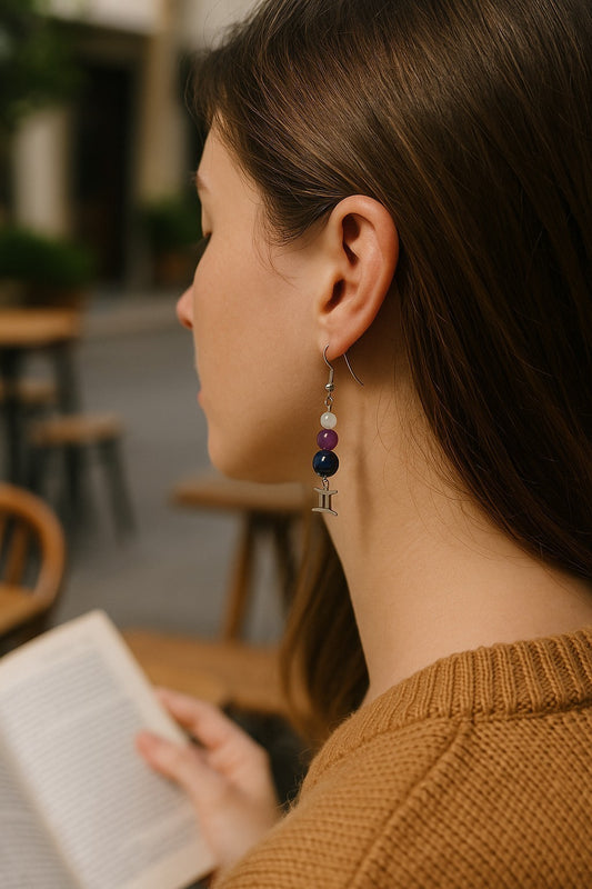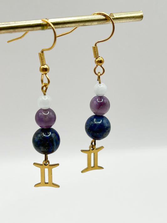 Boucles d’Oreilles Gémeaux en Pierres Naturelles – Bijou Astrologique Femme Cadeau Zodiaque