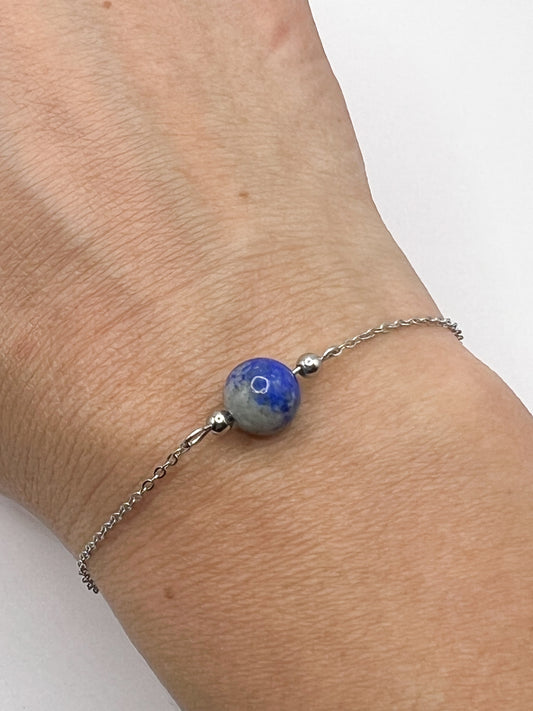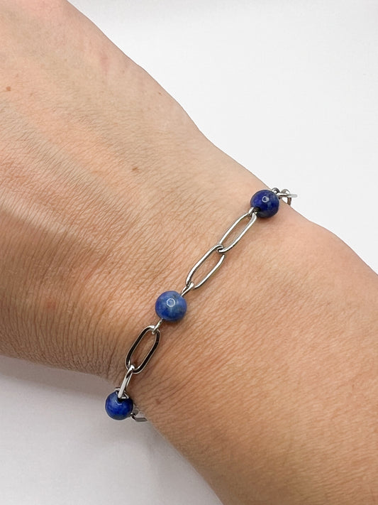 Bracelet en Lapis-Lazuli et Acier Inoxydable Argenté – Élégance et Énergie