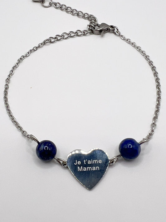 Bracelet Lapis-Lazuli "Maman Je T’aime" – Cadeau Émotion et Élégance