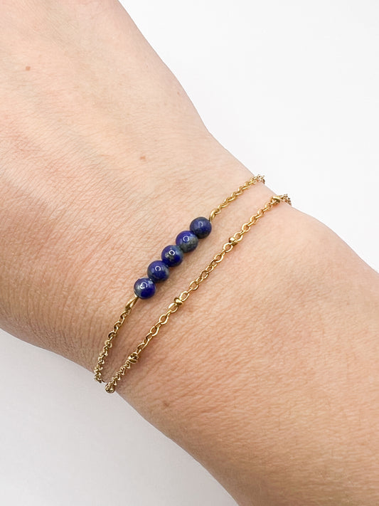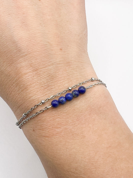 Bracelet Lapis Lazuli Double Rang en Acier Inoxydable Argenté – Élégance & Sérénité