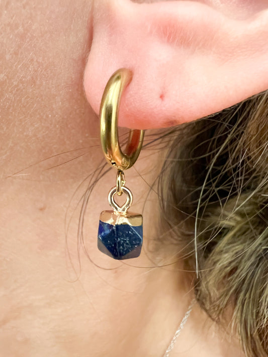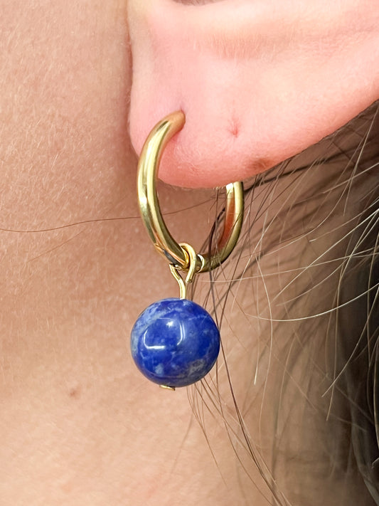 Mini Créoles Lapis Lazuli en Acier Inoxydable Doré – Élégance & Énergie