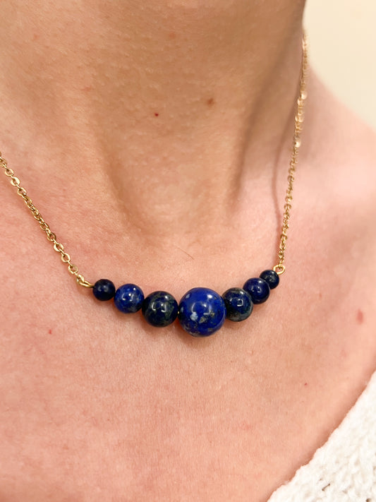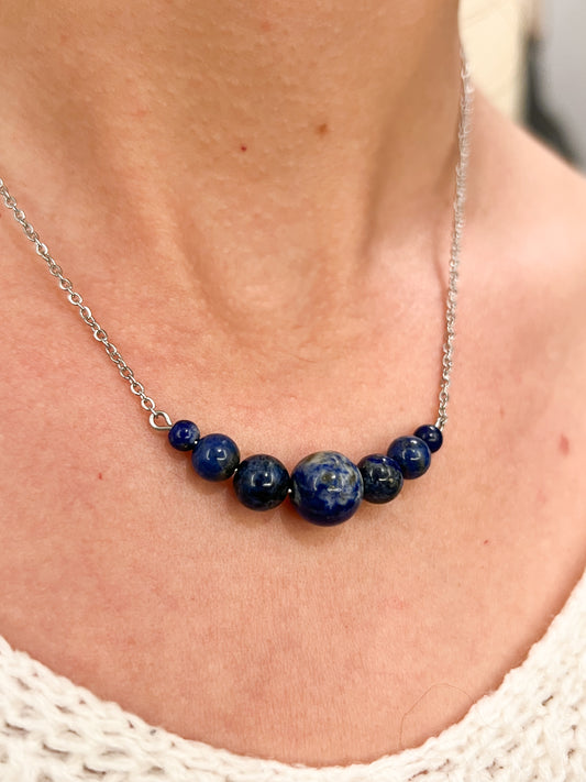Collier en acier inoxydable avec pierres naturelles en Lapis Lazuli