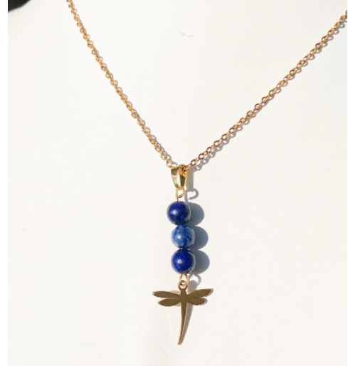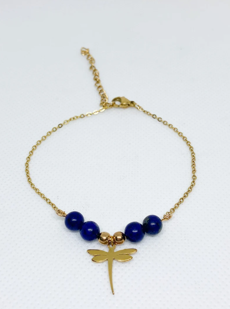Bracelet acier inoxydable en pierres naturelles Lapis Lazuli avec libellule