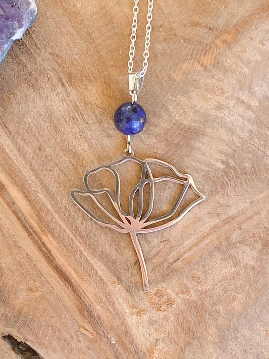 Collier en acier inoxydable avec pierres naturelles Lapis Lazuli