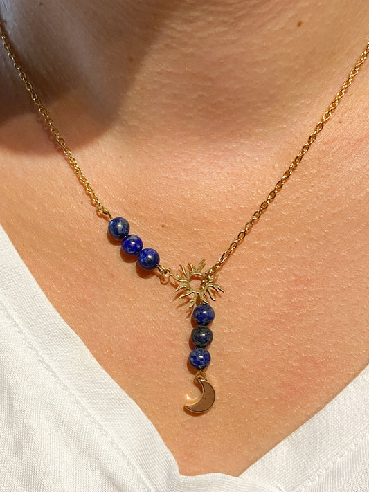 Collier Lapis Lazuli en acier inoxydable " Soleil et Lune "