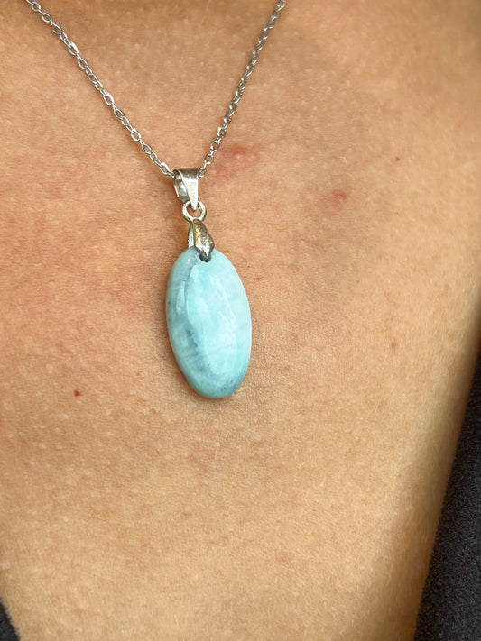 Collier Larimar Naturel – Sérénité & Douceur | Chaîne en Acier Inoxydable Argenté