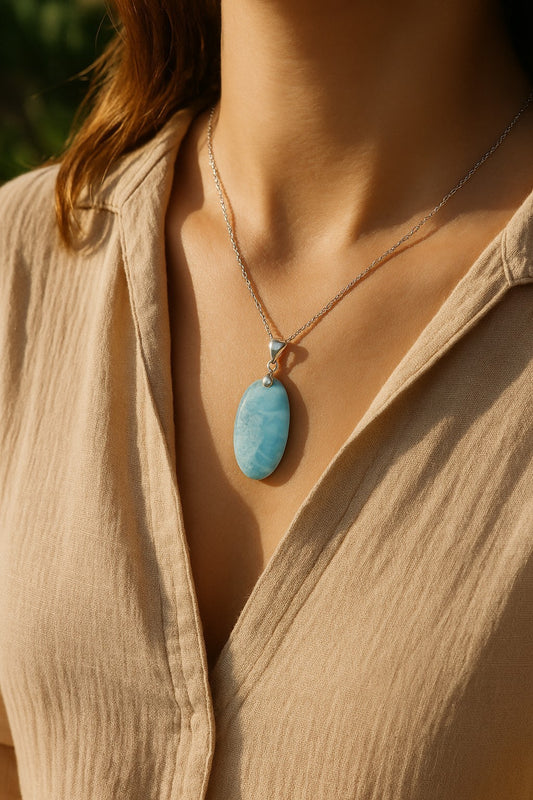 Collier en Larimar Naturel – Pierre Bleue Apaisante et Énergétique