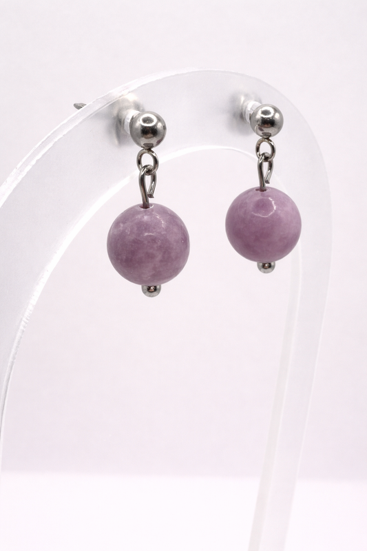 Boucles d’oreilles en Lépidolite – Acier argenté | Apaisement & Sérénité