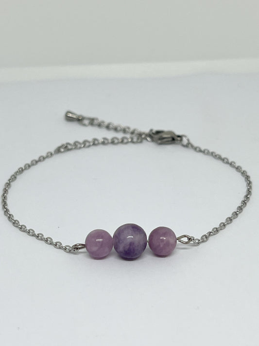 Bracelet Lépidolite Naturelle et Acier Argenté – Apaisement et Style