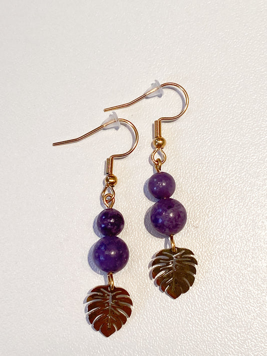 Boucles d'Oreilles en Lépidolite et Acier Inoxydable Doré – Bijoux Nature et Sophistication