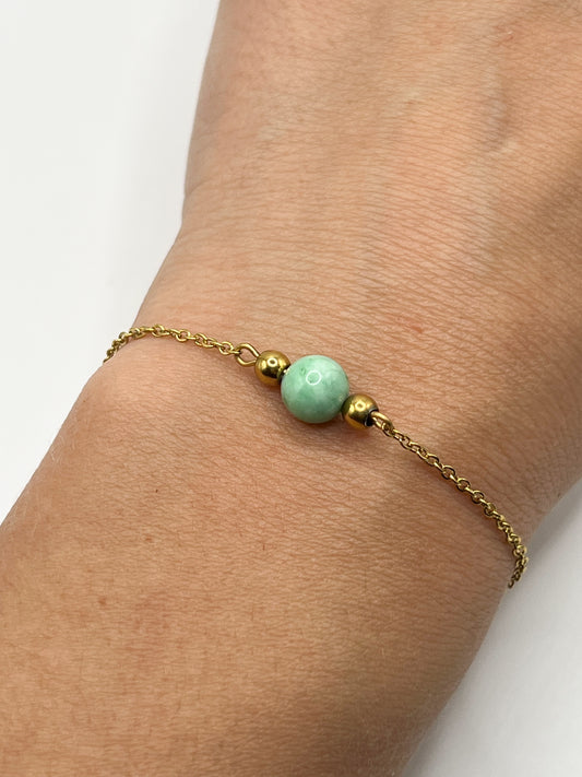 Bracelet en Émeraude naturelle – Acier inoxydable doré & bienfaits lithothérapie