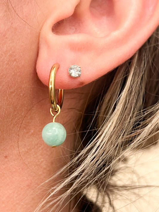 Boucles d’oreilles émeraude en acier doré – Élégance et éclat naturel