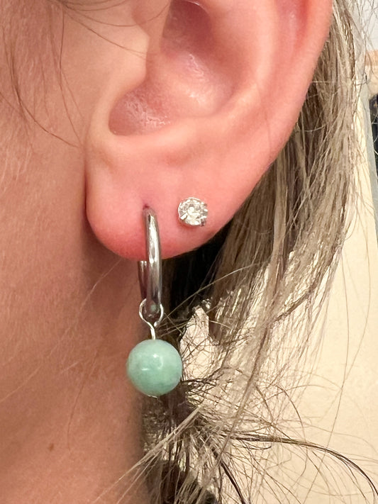 Boucles d’oreilles émeraude en acier argenté – Élégance naturelle et raffinement
