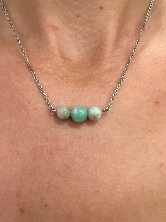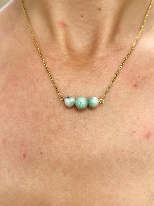 Collier Émeraude naturelle – Acier inoxydable argenté & bienfaits lithothérapie