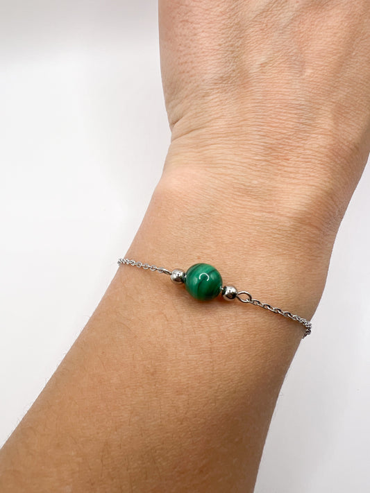 Bracelet malachite pierre verte et acier inoxydable – Bijou raffiné et protecteur