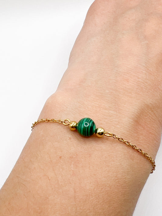 Bracelet malachite doré – Pierre de protection et de transformation au poignet