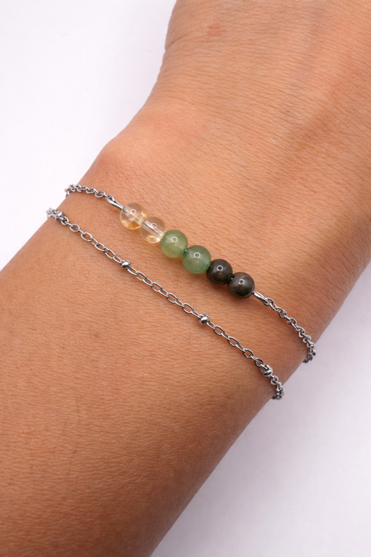 Bracelet Porte-Bonheur en Pierre Naturelle & Acier Inoxydable Argenté – Bijou Chance Femme