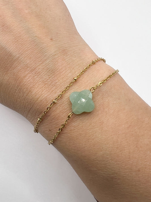 Bracelet Aventurine Verte & Trèfle – Symbole de Prospérité en Acier Doré