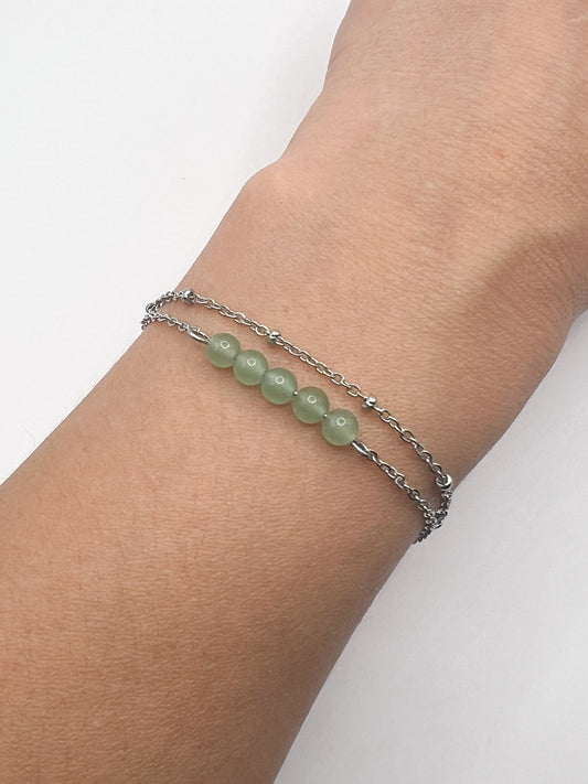 Bracelet aventurine et acier argenté – Bijou double rang chic et apaisant