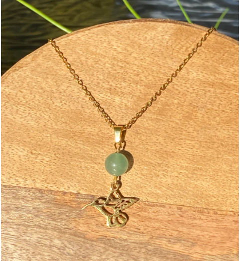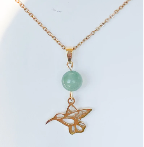Collier colibri en acier inoxydable en pierres naturelles Aventurine