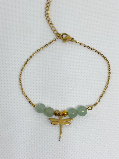 Bracelet acier inoxydable en pierres naturelles Aventurine avec libellule