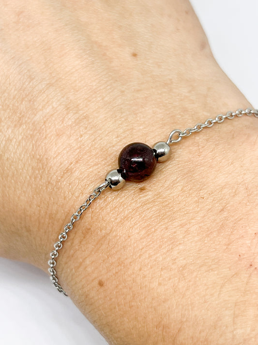 Bracelet Grenat en Acier Inoxydable Argenté – Chic et Intemporel