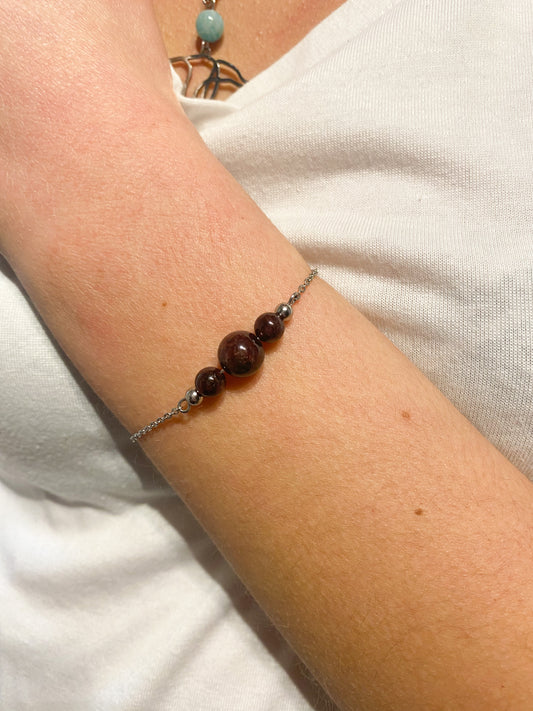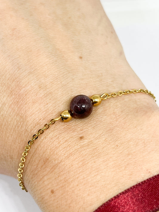 Bracelet en Grenat Doré – Pierre de Naissance Janvier et Élégance Intemporelle