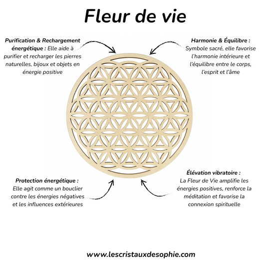 - 🌸 Fleurs de Vie en bois naturel : support sacré pour recharger les pierres grâce à sa géométrie sacrée