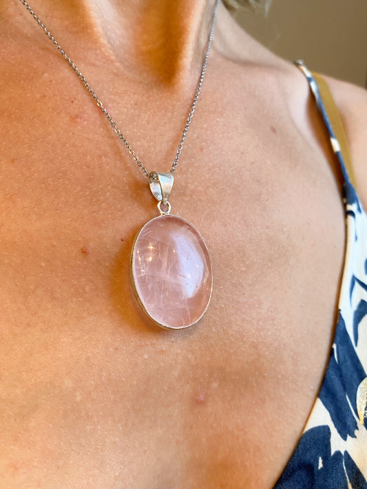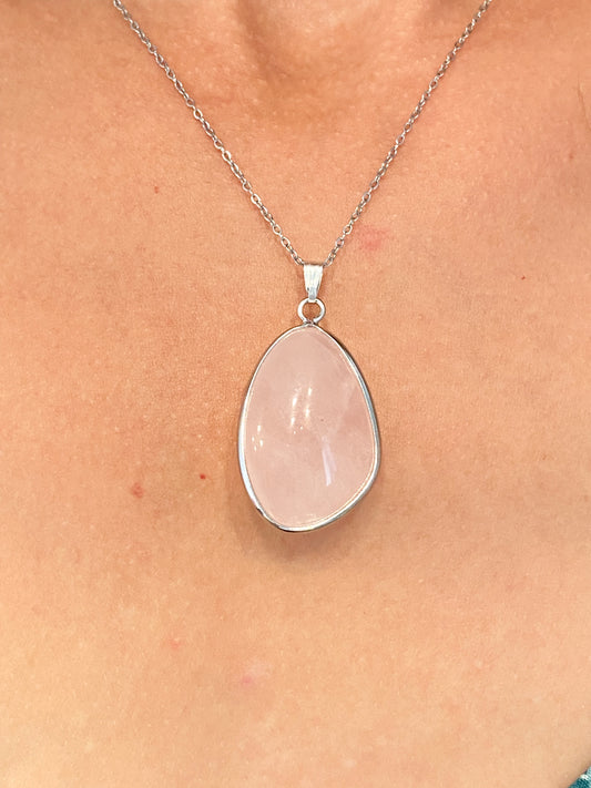 Collier Quartz Rose – Amour & Douceur – Acier Inoxydable Argenté