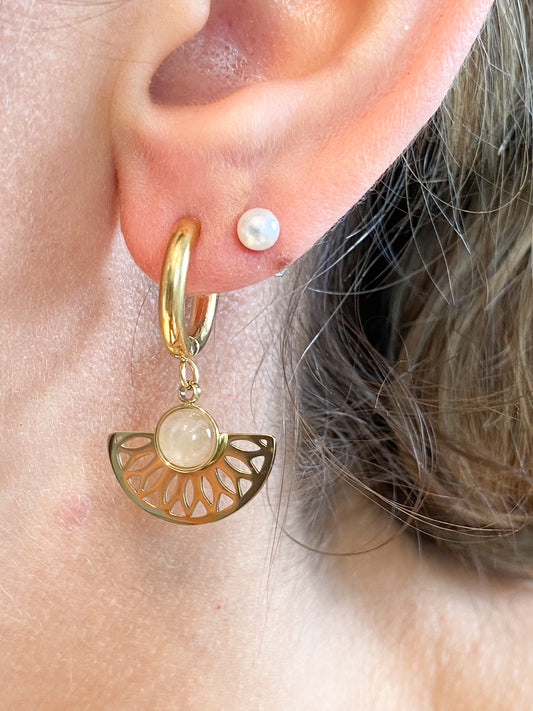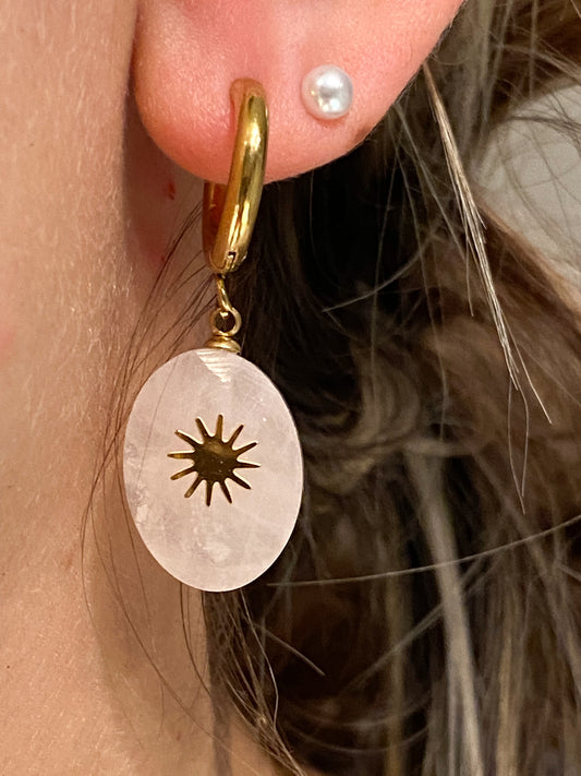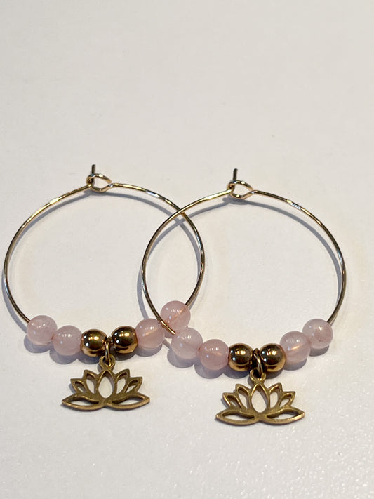 Créoles en Quartz Rose et Acier Doré Inoxydable – Alliez Style et Bienfaits