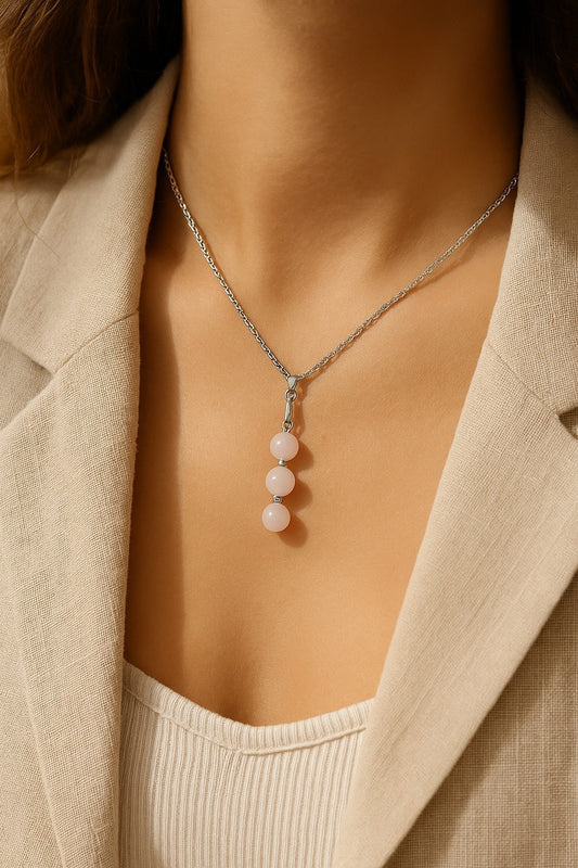 Rayonnez de tendresse : Collier en quartz rose et acier inoxydable, un bijou délicat qui célèbre l'amour et l'élégance.