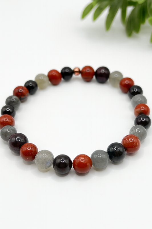 Bracelet Ancrage et Vitalité – Pierres Labradorite, Jaspe Rouge & Grenat