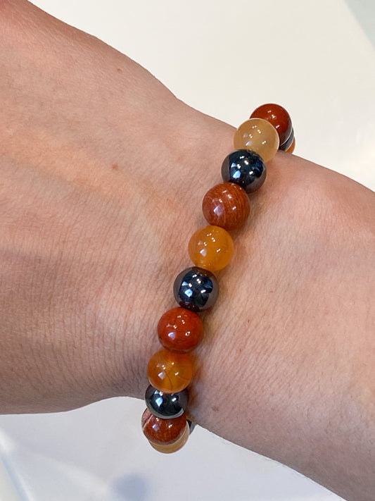 Bracelet anti-fatigue en pierres naturelles jaspe rouge, cornaline et Hématite 8mm